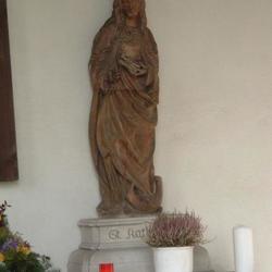 Die heilige Katharina (griechisch „die Reine“), der die Kapelle geweiht wurde, ist eine sagenumrankte Gestalt, deren blutrünstige Märtyrergeschichte ab dem 10. Jahrhundert große Verbreitung fand. Der Legende nach bekehrten sich die fünfzig besten Philosophen ihrer Zeit nach einer Diskussion mit ihr in Alexandria zum christlichen Glauben. Daraufhin ließ der römische Kaiser Maxentius die Philosophen verbrennen und Katharina, die sich als „Gottes Braut“ weigerte, den Kaiser zu heiraten, foltern und töten. In Folge ereignete sich eine Reihe von Wundern. Katharina ist die Schutzheilige der Philosophen und zählt zu den Vierzehn Nothelfern. Ihr Namenstag wird am 25. November gefeiert.